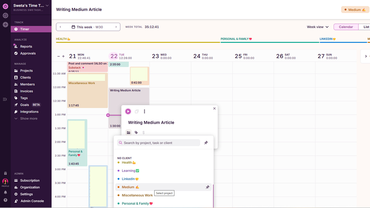 Toggl Track is a tool that helps you track the time you spend on different tasks. Here’s how it works: