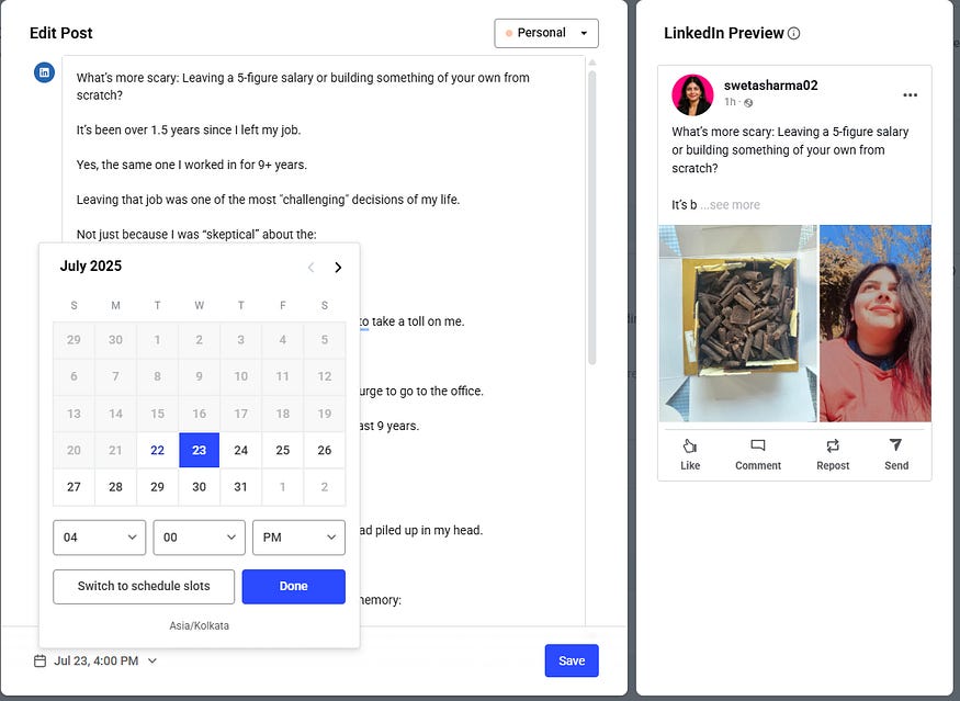 Before Buffer, I’d never used a scheduler as a creator because I was skeptical. I’d heard people say that using a third-party scheduler hampers your reach and negatively affects your engagement.