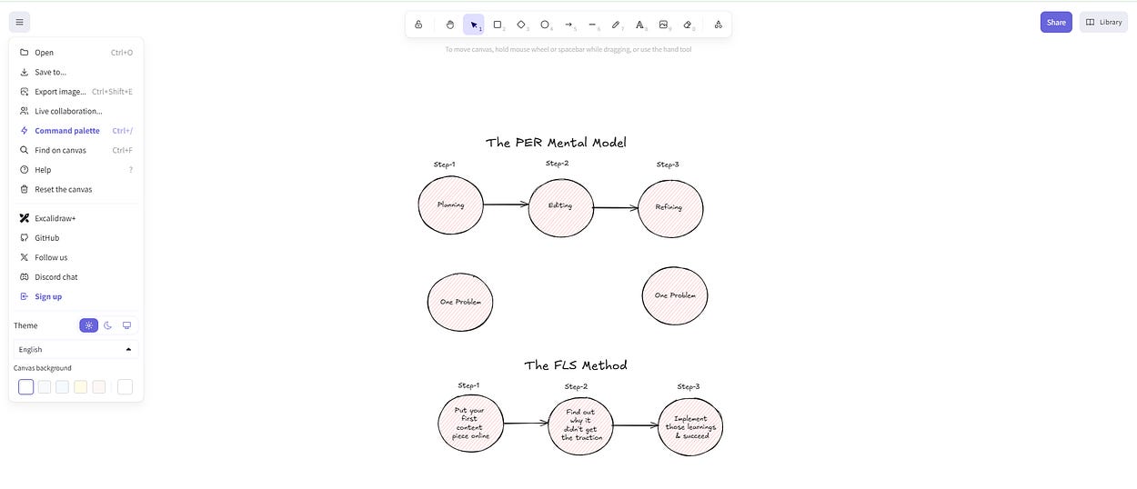 You can treat Excalidraw like a digital whiteboard where you can scribble, make flowcharts, or mind maps. Basically, do whatever helps you break down your thoughts and see things more clearly.